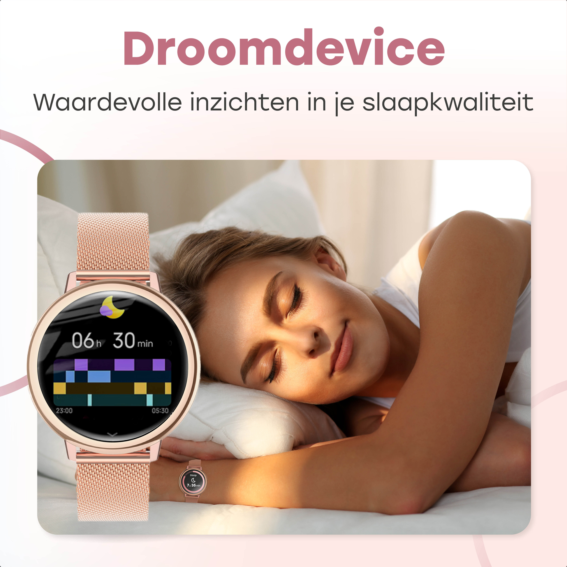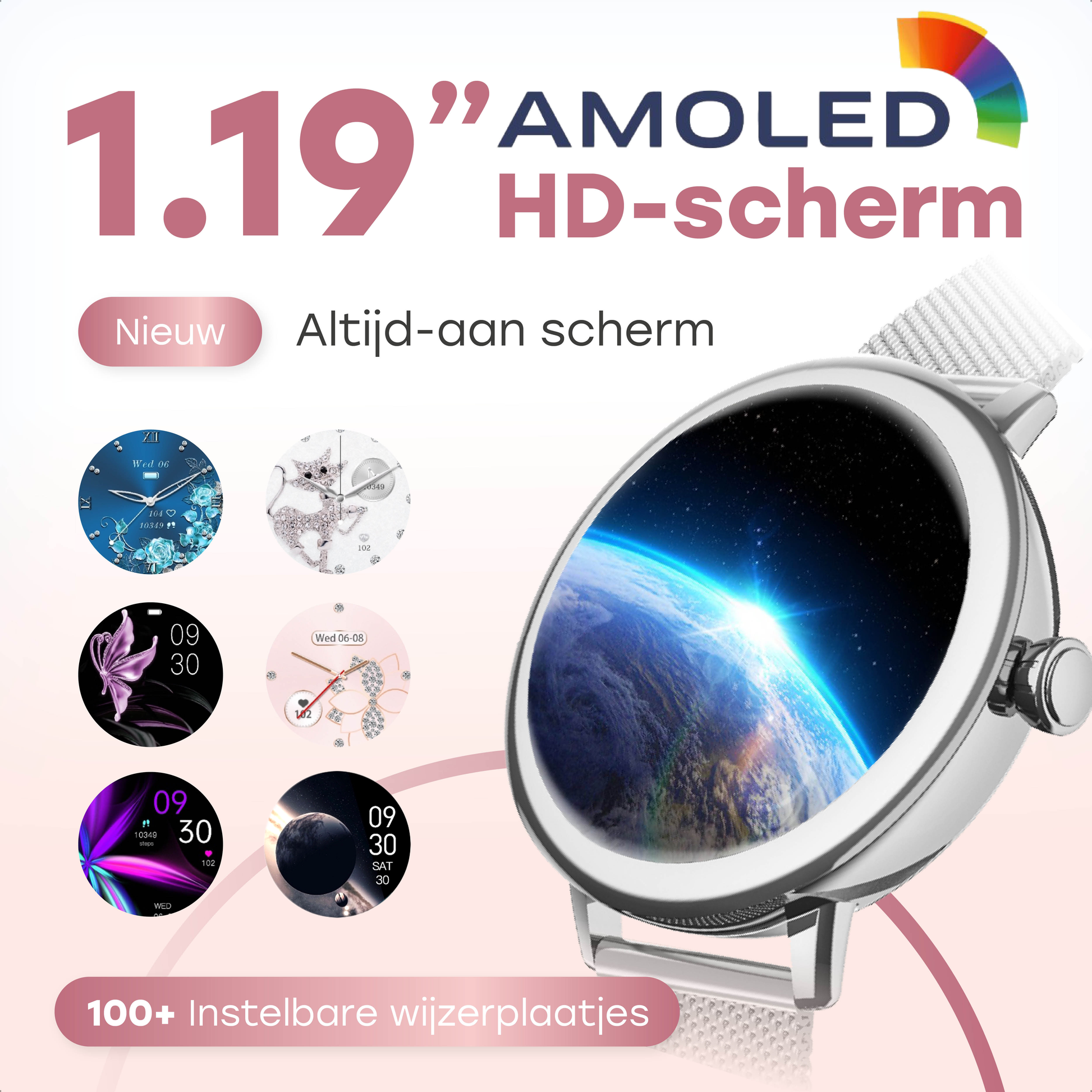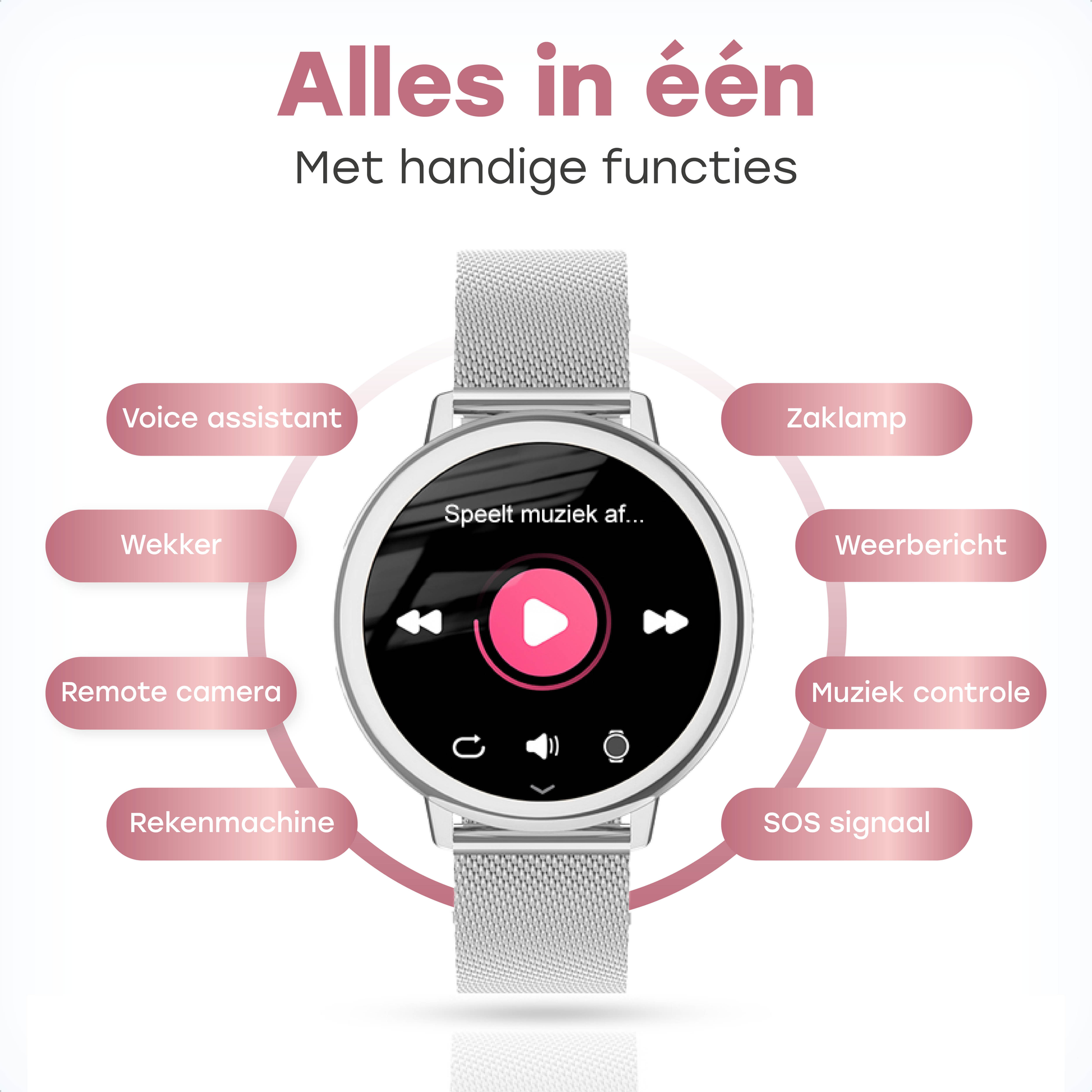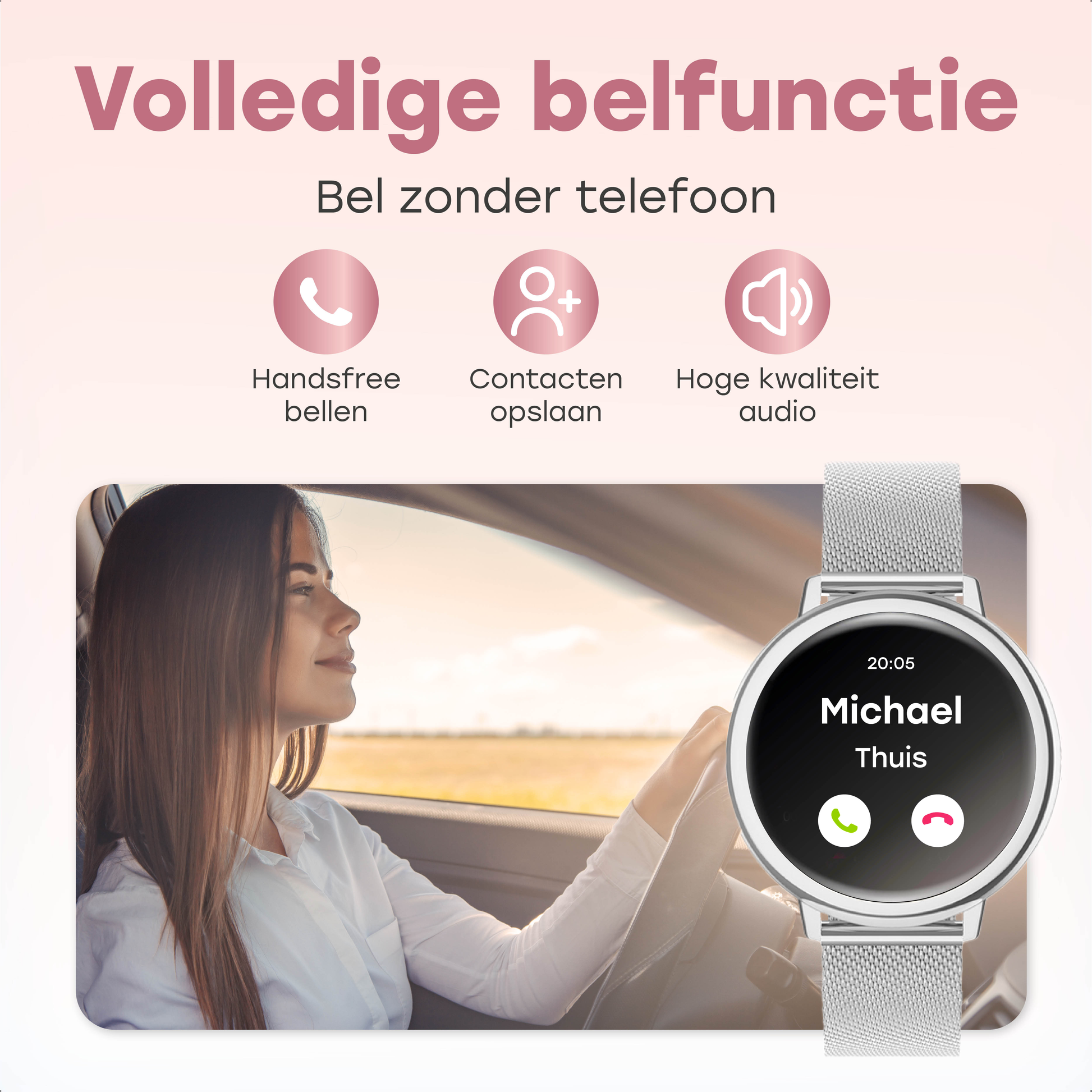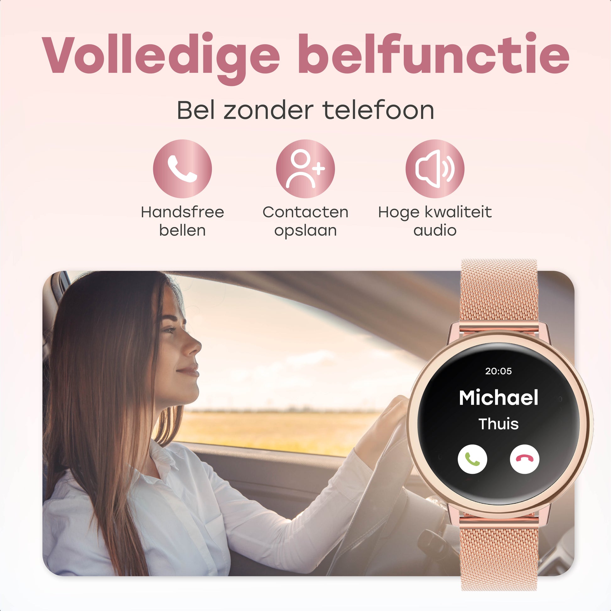 Op zoek naar een smartwatch die zowel elegant als slim is? De Beleza Smartwatch van Bizoule is precies wat je nodig hebt! Met een 1,19 inch Amoled scherm en een slank, verfijnd design in Rosé-Goud, is dit horloge een lust voor het oog. Met keuze uit 100+ wijzerplaatjes en de mogelijkheid om zelf een foto in te stellen, heb je altijd de perfecte match voor elke gelegenheid. En met onmisbare smartfuncties zoals berichten lezen en handsfree bellen, blijf je altijd verbonden. Met de Beleza Smartwatch wordt stijl gecombineerd met functionaliteit.