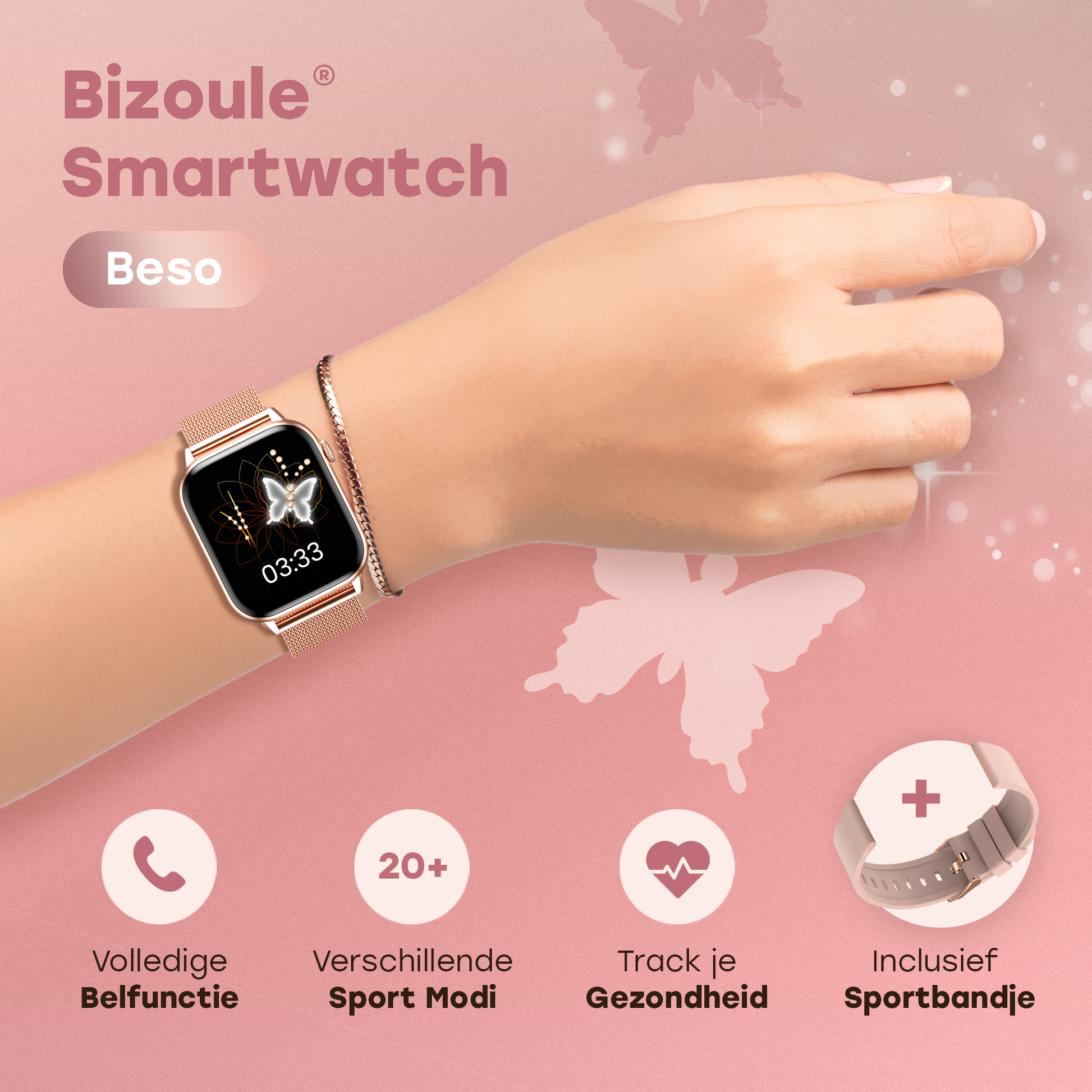 Ben jij op zoek naar een Smartwatch van topkwaliteit en vol met handige functies? Dan is de Bizoule Smartwatch Beso echt iets voor jou! Met een 1,9 inch HD scherm en volledige belfunctie, is deze smartwatch perfect voor jouw dagelijkse behoeften. Met meer dan 100 wijzerplaatjes en allerlei gezondheids- en sportfuncties, zal de Beso zeker aan al jouw wensen voldoen. Waar wacht je nog op? Ontdek de mogelijkheden van de Bizoule Beso vandaag nog!