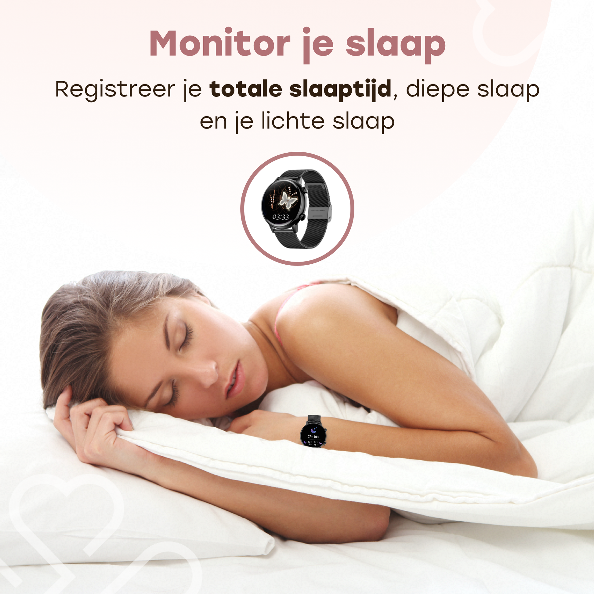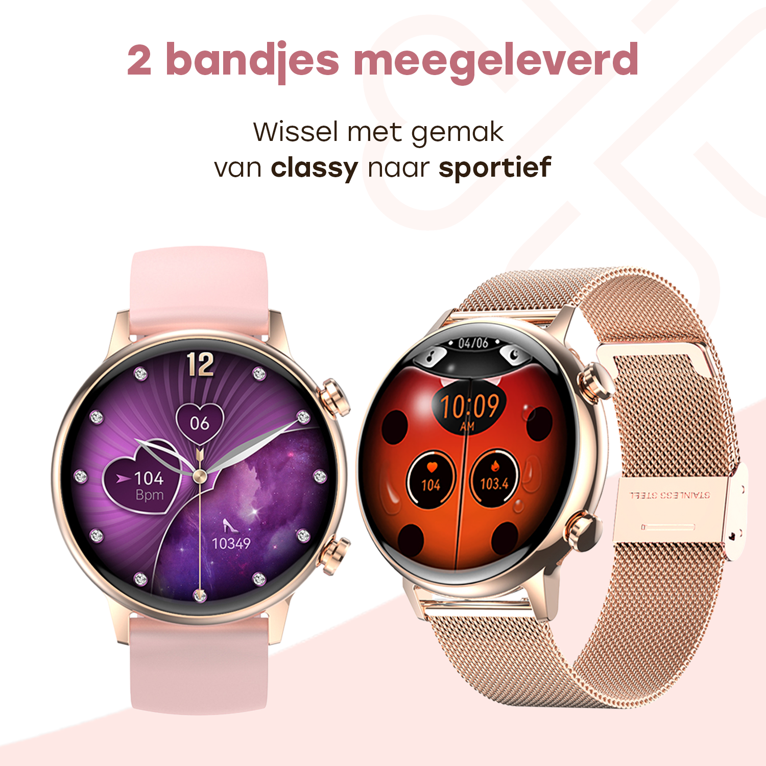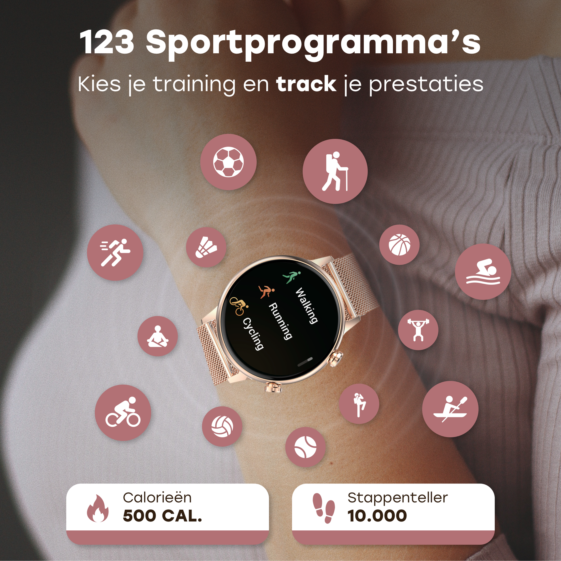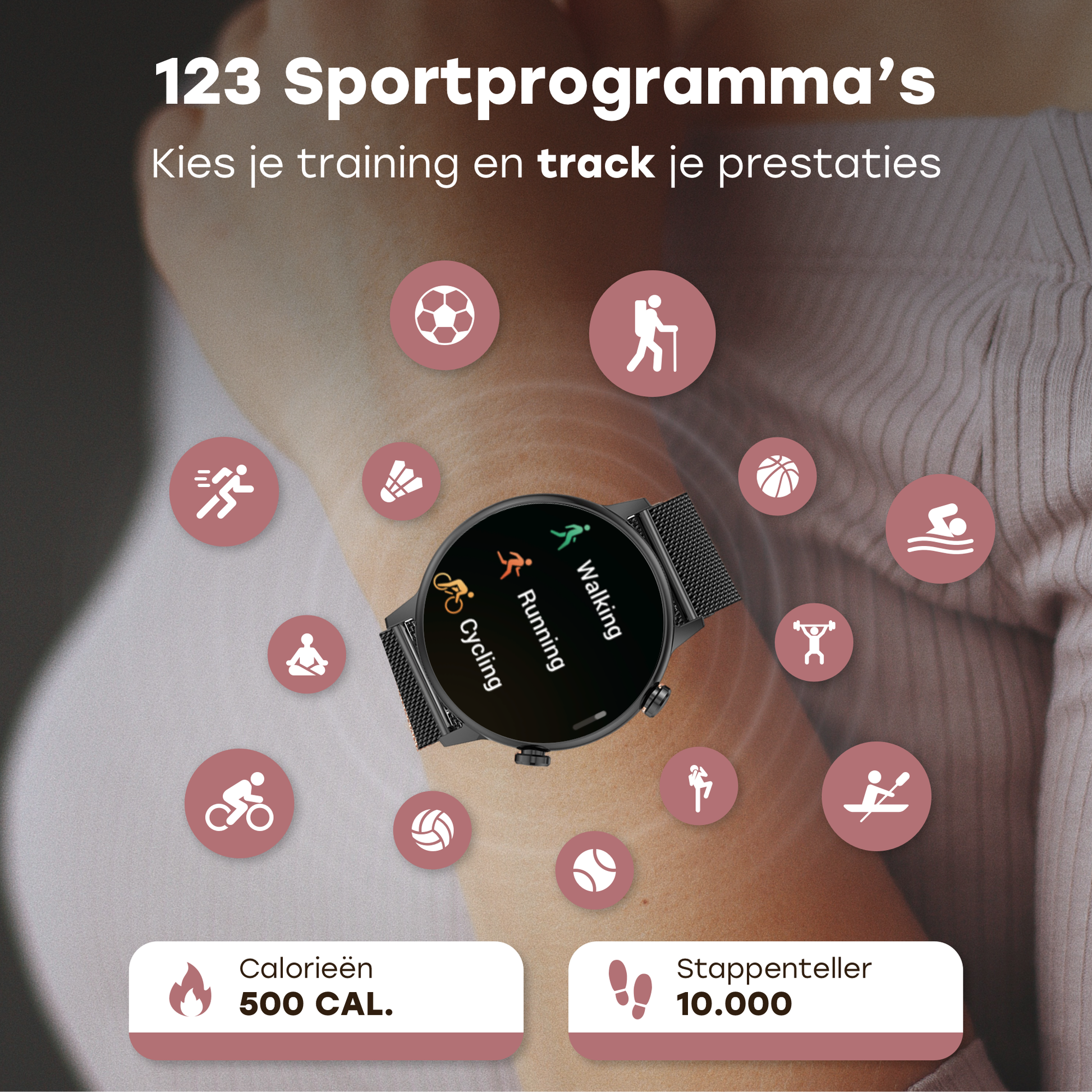 Op zoek naar een smartwatch die niet alleen functioneel is, maar er ook nog eens stijlvol uitziet? Ontdek de Smartwatch Divina van Bizoule! Met een 1,1 inch 360x360 Amoled scherm geniet je van haarscherpe beelden. Bovendien kun je met deze smartwatch handsfree bellen, berichten lezen én kiezen uit 100+ wijzerplaatjes. Dankzij de vele gezondheidsfuncties en sportmodi ben je altijd op de hoogte van je hartslag, stappen en calorieën. Met de Smartwatch Divina haal je een complete assistent om je pols!